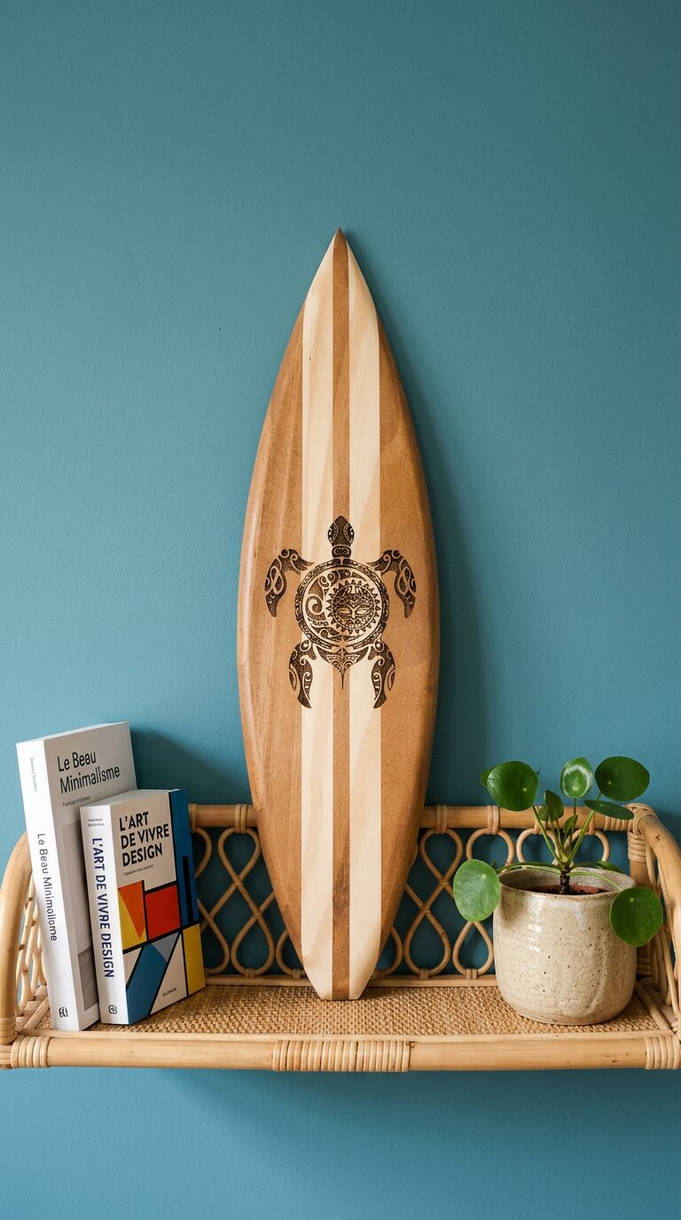 À la fois objet décoratif et pièce inspirée de l’univers du surf, elle apportera une atmosphère de détente et de voyage à votre décoration.